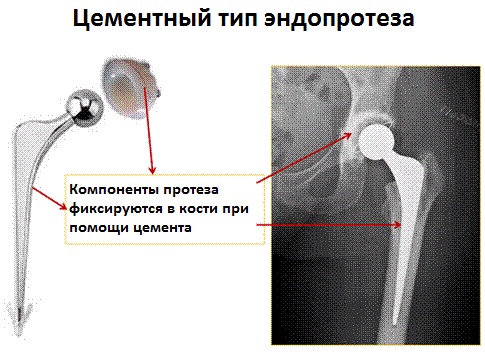 Кроме того, цементному эндопротезированию обычно отдают предпочтение при длительно существующих переломах шейки бедренной кости (когда уже сформировался ложный сустав) у пожилых пациентов. Также, цементный эндопротез показан при гнойном поражении кости (остеомиелите), так как в цемент можно добавить антибиотик.